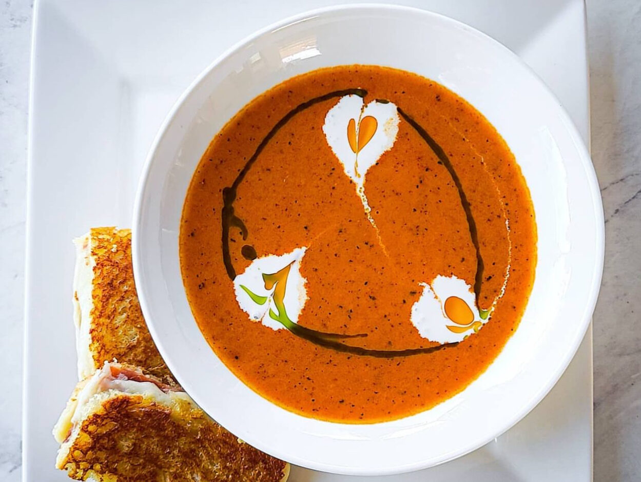 In the midst of a super rainy season in San Diego Chef Jillian brought her comforting cooking class of tomato soup and grilled cheese. A pot of delicious tomato soup was quickly brought to a simmer, while grilled cheese sandwiches were prepped for the griddle. It all came together nicely in a comforting serving.