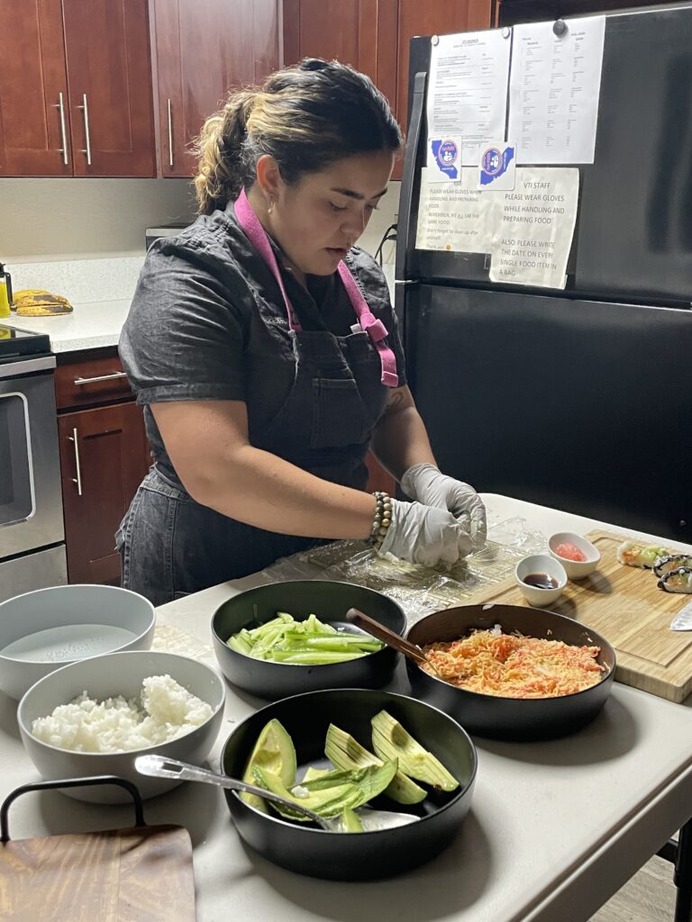 Today’s class was all about nutrition and learning about the meal prep business model and how this idea came to fruition for owners Chefs Lesa & Violette. We then gathered all hands to chop and cook ingredients to make custom fajita bowls. Then it was time to eat, and volunteer registered-dietician Rachel checked in on all the attendees to answer their nutrition questions. Everyone left class with a better understanding on how to better nourish their bodies.