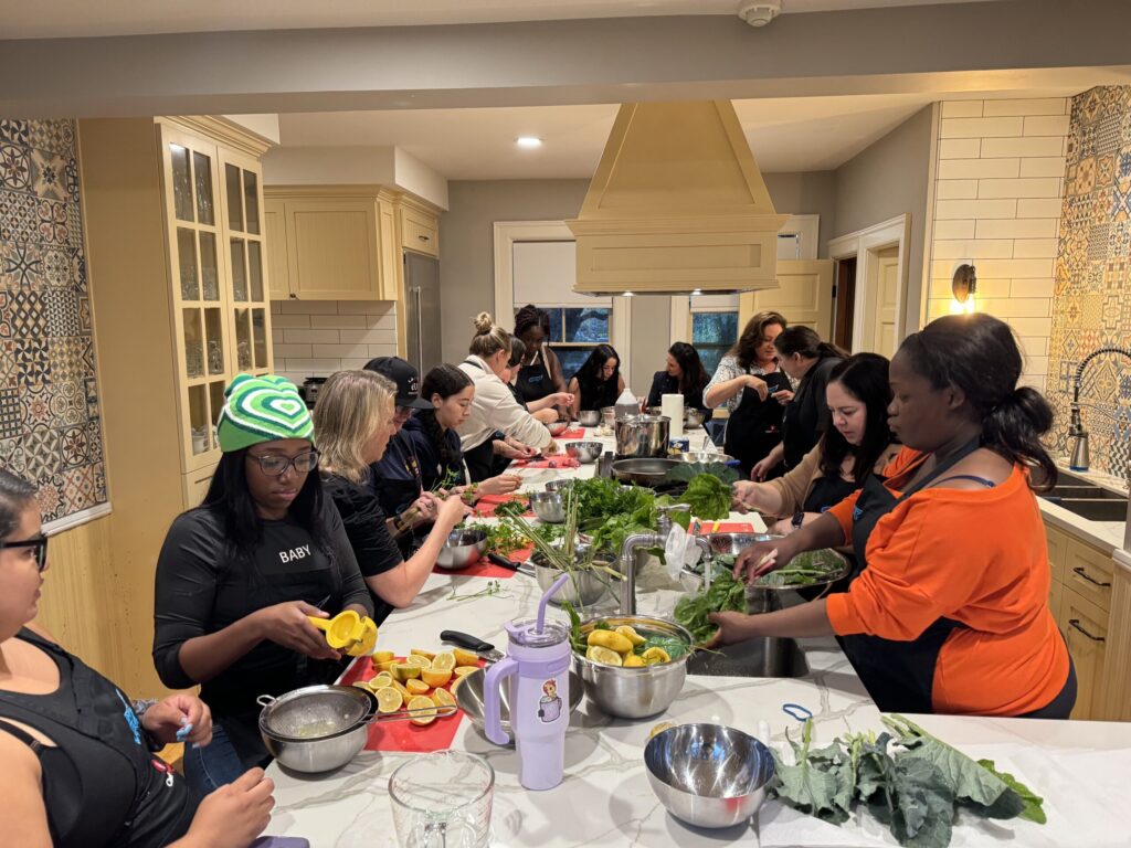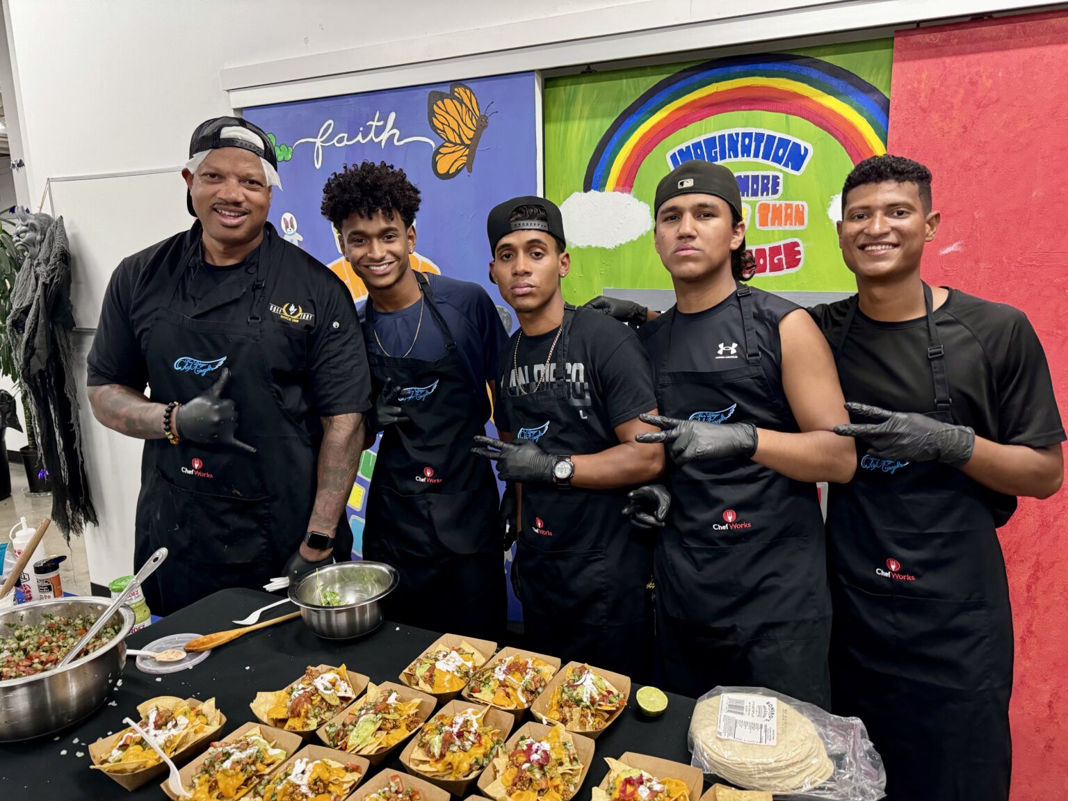 On Mondays Chef Tony cooks plant-based. And today he taught us how to make the most delicious vegan nachos. The “meat” was a blend of finely chopped walnuts and soyrizo, and some of Chef Tony’s secret spices. The cheese was made with poached cauliflower, butternut squash, carrots, and potato, then puréed with some more secret seasonings to make it taste cheesy. All this was layered with freshly made salsa, pickled onions, and a whole lot more layers of flavor. Enjoyed by all, especially the posse of proudly Venezuelan young sous chefs !